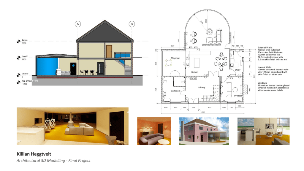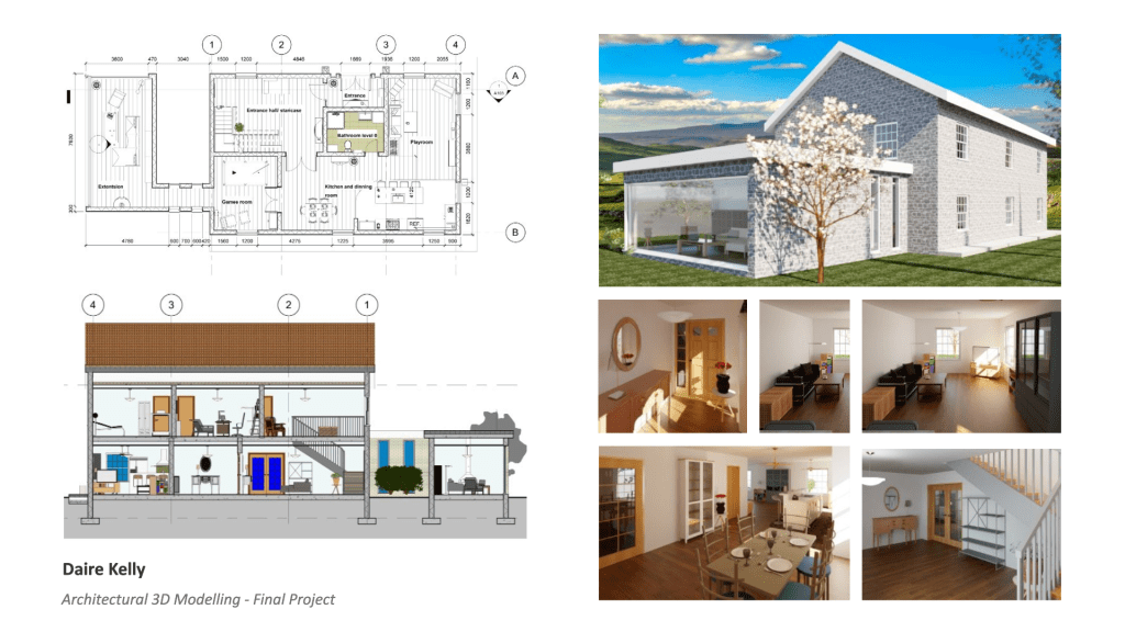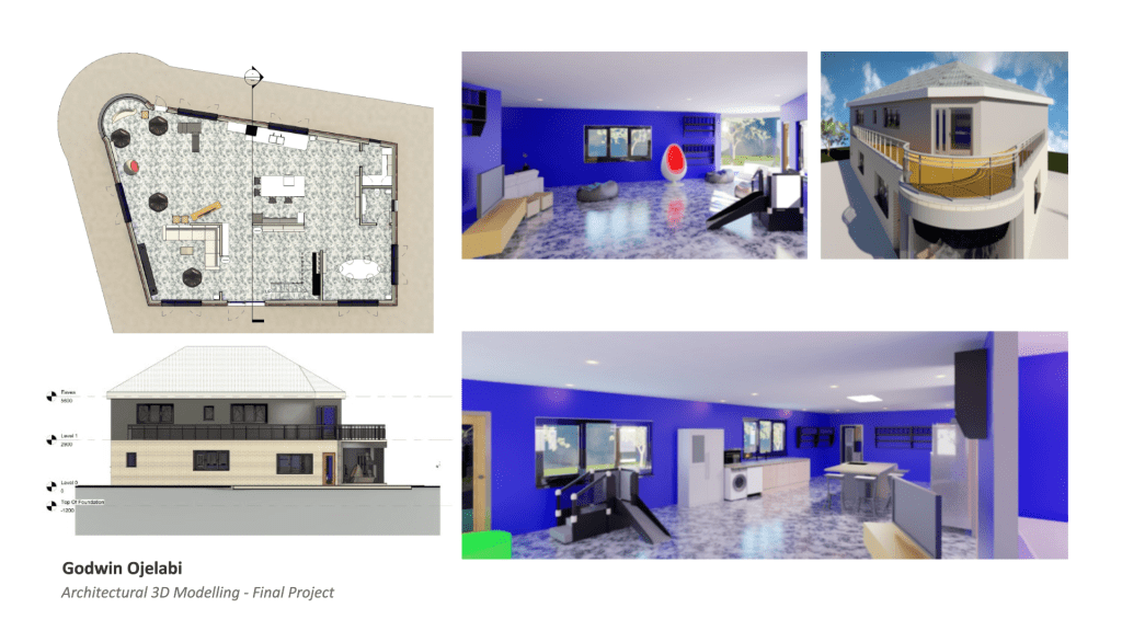 This course introduces the students to BIM (Building Information Modelling) Software, which they use throughout the year to produce architectural drawings and 3D models of different building types. The portfolios shown demonstrate the work created by students during the year.