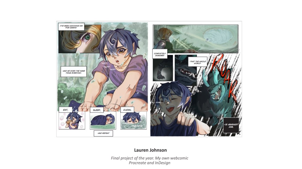 Illustration communicates through image making, in the unique/personal vision of the illustrator. This course blends digital technology with traditional methods, while offering a creative environment where students can experiment and develop their illustrative skills … all with a bit of marketing savvy to get you started!